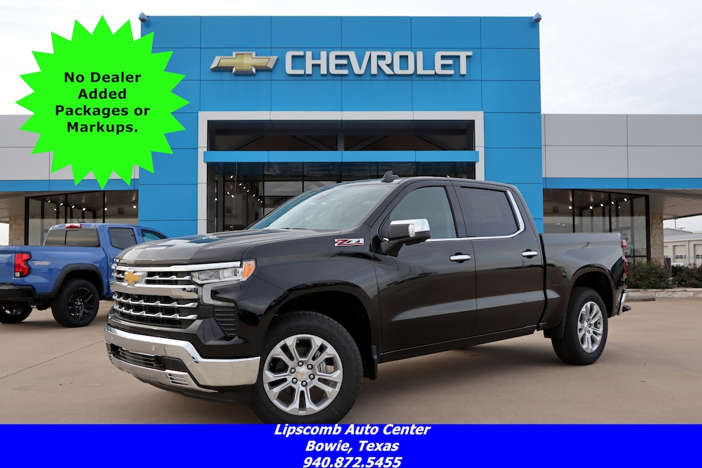 Black 2026 Chevrolet Silverado 1500 LTZ 4WD 10-Speed Automatic EcoTec3 6.2L V8 10-Speed Automatic, 4WD, Jet Black Leather.