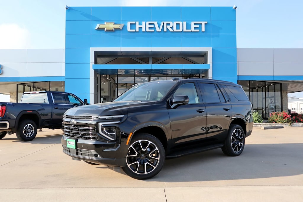 Black 2026 Chevrolet Tahoe RST RWD 10-Speed Automatic with Overdrive EcoTec3 5.3L V8 Jet Black/Victory Red Leather.