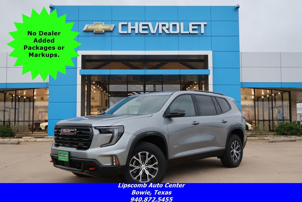 Introducing the 2026 GMC Acadia AT4, a rugged and refined SUV that's ready to elevate your driving experience. With its bold, muscular design and advanced all-terrain capabilities, this vehicle is the perfect companion for your next adventure.- STERLING METALLIC exterior with ALL TERRAIN TIRES- TRAILERING PACKAGE for enhanced towing capabilities- WIFI HOTSPOT CAPABLE to keep you connected on the go- WIRELESS CHARGING to power your devices effortlessly- ACTIVE NOISE CANCELLATION for a serene cabin experience- Luxurious ALL-WEATHER PACKAGE and LUXURY PACKAGEStep inside the Acadia AT4 and you'll be greeted by a premium, well-appointed interior. The BOSE PREMIUM 12-SPEAKER SYSTEM with SUB-WOOFER delivers an immersive audio experience, while the SIRIUSXM with 360L keeps you entertained with endless entertainment options. The 8-WAY POWER DRIVER SEAT and 6-WAY POWER FRONT PASSENGER SEAT ensure optimal comfort, and the HEATED & VENTILATED FRONT SEATS and HEATED STEERING WHEEL provide year-round comfort.The Acadia AT4's advanced technology features further enhance your driving experience. The 8-INCH DIAGONAL HEAD-UP DISPLAY puts crucial information right in your line of sight, while the REMOTE KEYLESS ENTRY and LAMINATED ACOUSTIC GLASS provide added convenience and refinement.Beneath the bold exterior, the Acadia AT4 is powered by a 2.5L DOHC engine paired with an 8-SPEED AUTOMATIC TRANSMISSION and ALL-WHEEL DRIVE. This powertrain delivers an impressive balance of performance and efficiency, with an EPA-estimated 20 MPG in the city and 23 MPG on the highway.Whether you're tackling the daily commute or embarking on a weekend getaway, the 2026 GMC Acadia AT4 is ready to elevate your driving experience. With its exceptional capabilities, premium features, and striking design, this SUV is a true standout in its class. We invite you to visit our showroom and experience the Acadia AT4 for yourself.