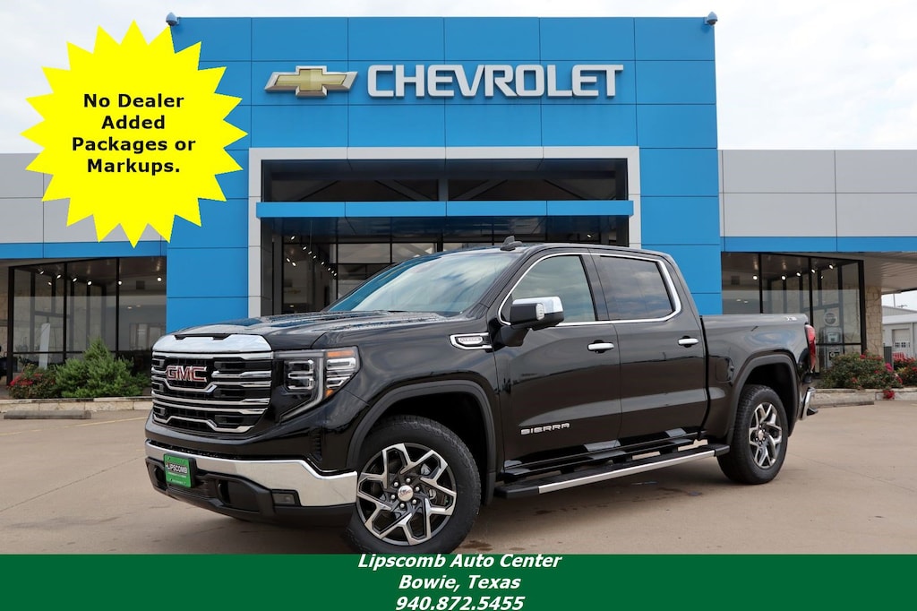 Onyx Black 2026 GMC Sierra 1500 SLT 4WD 10-Speed Automatic EcoTec3 5.3L V8 10-Speed Automatic, 4WD, Black Leather.
