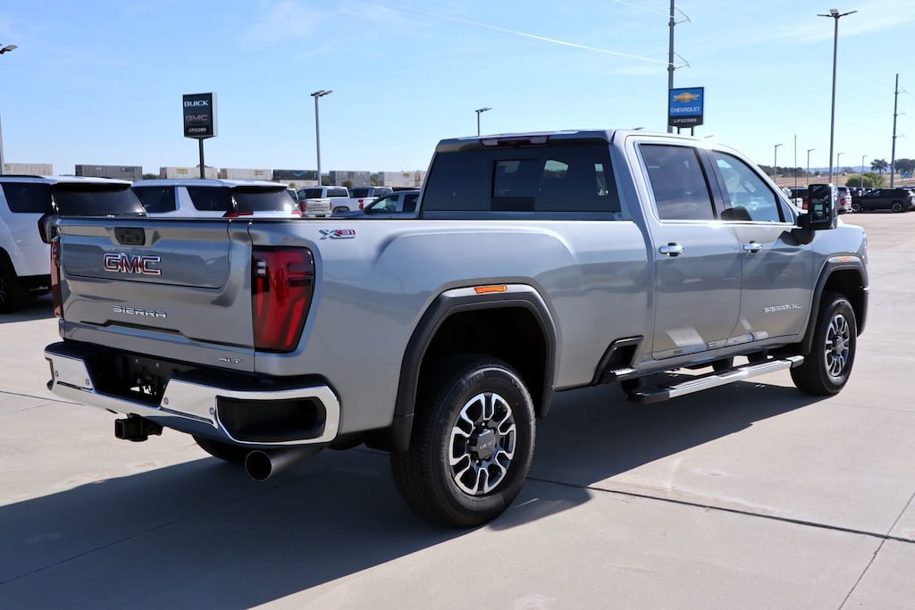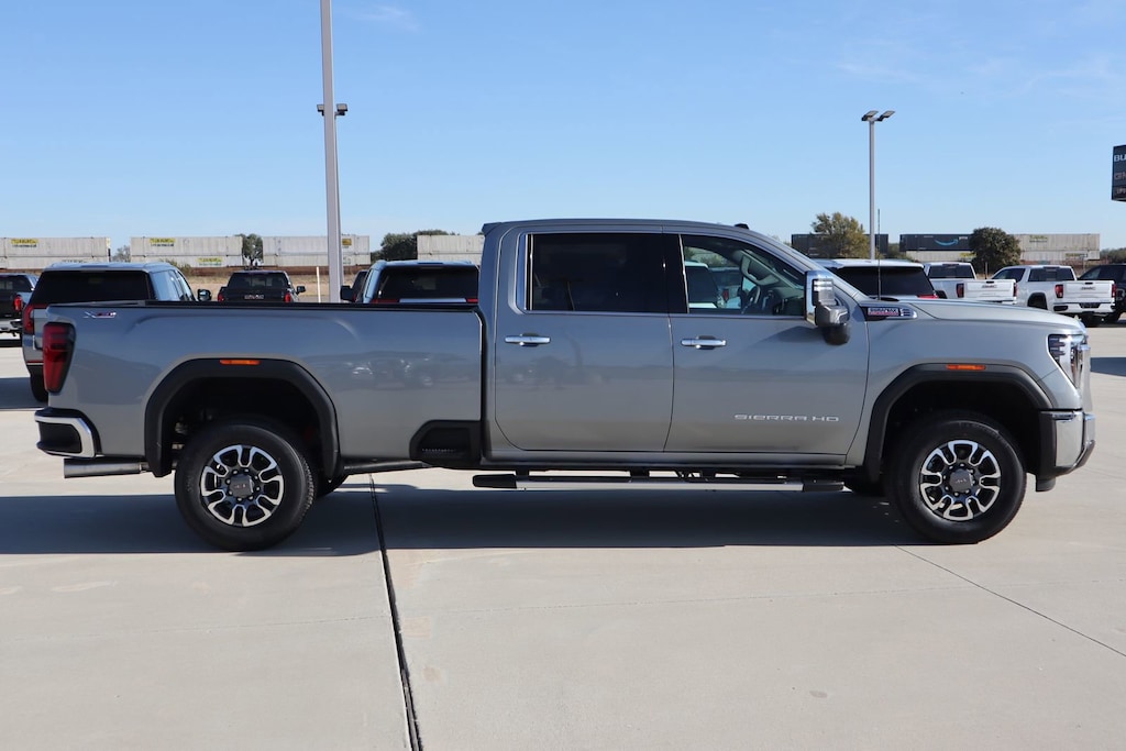 Sterling Metallic 2026 GMC Sierra 3500HD SLT 4WD 10-Speed Automatic Duramax 6.6L V8 Turbodiesel 10-Speed Automatic, 4WD, Dark Walnut/Slate Leather.