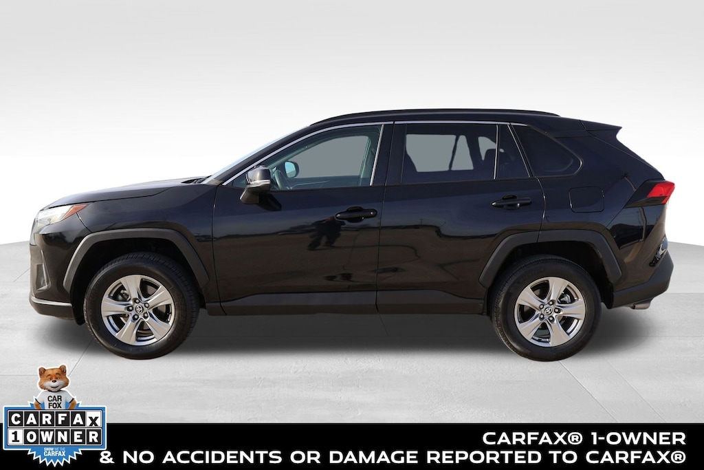 The RAV4 XLE's striking black exterior exudes a bold, confident presence, while the 2.5L 4-Cylinder DOHC Dual VVT-i engine and 8-Speed Automatic AWD powertrain deliver a responsive and efficient driving experience. With an impressive EPA-estimated 27 MPG in the city and 33 MPG on the highway, this SUV strikes the perfect balance between power and fuel economy.